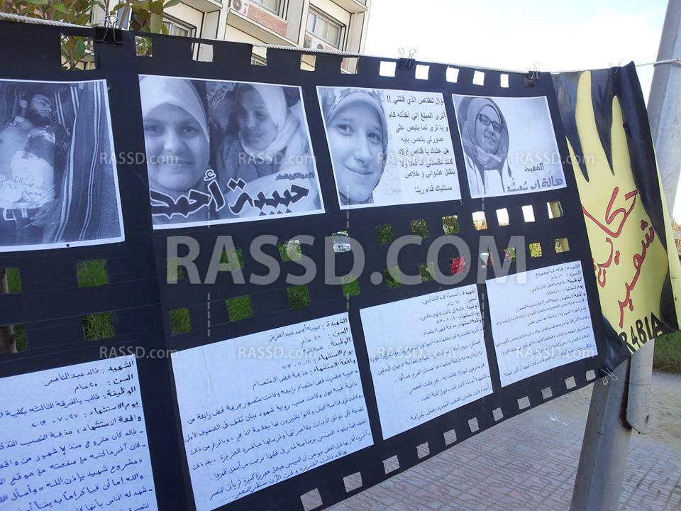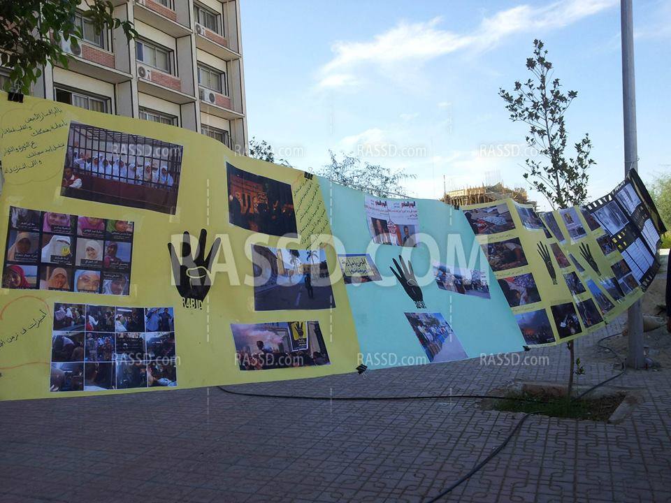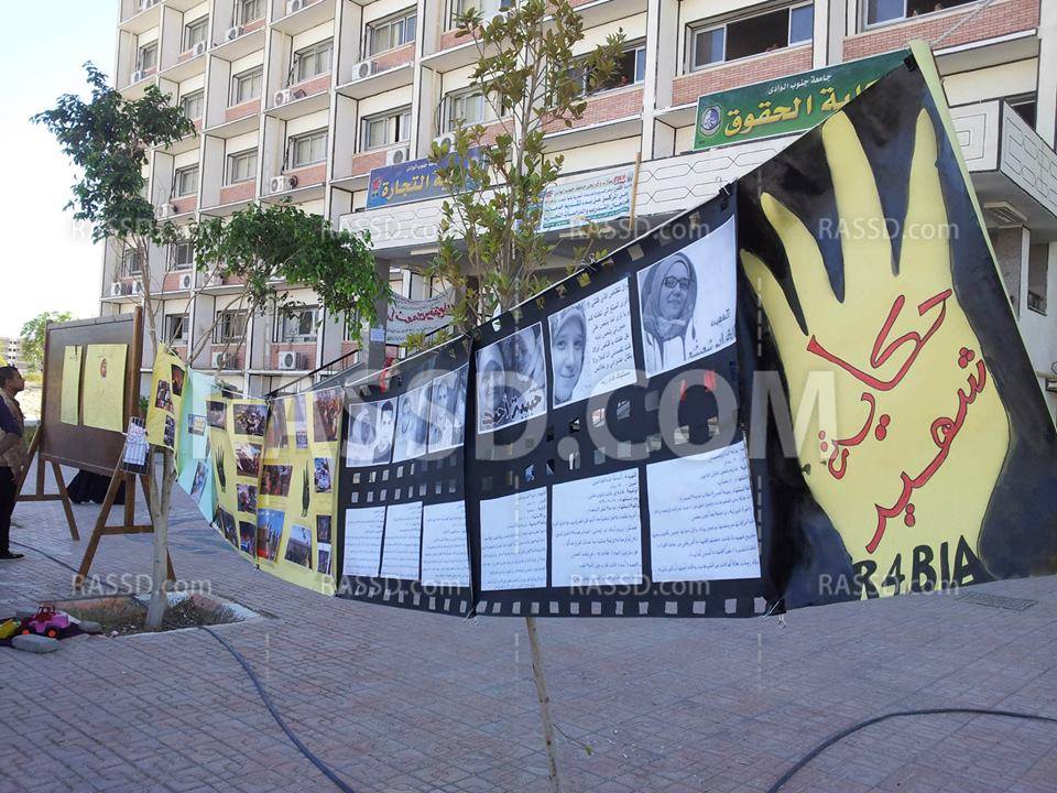 نظمت حركة طلاب ضد الانقلاب بجامعة جنوب الوادي معرضا للصور للتنديد بالتعامل المني للانقلاب .. شهد المعرض صوراً لشهداء الجامعة في فض اعتصام رابعة وصورا توضح الأزمات الاقتصادية في عهد الانقلاب وعلي رأسها ازمة البوتجاز ونماذج معبرة لسجن حرائر الاسكندرية وأخري لفض اعتصام رابعة