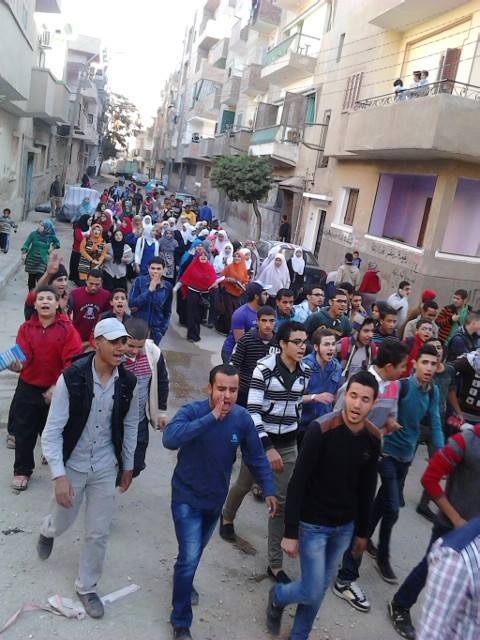نظم ائتلاف طلاب ثانوى ضد الانقلاب ببنى سويف قبيل عصر اليوم مسيره من مسجد برج الايمان حيث تحركت المسيره للتنديد بقمع الطلاب و الحريات و لتهنئة بنات الاسكندرية بخروجهم من سجون الانقلابيين و جميع حرائر الوطن.