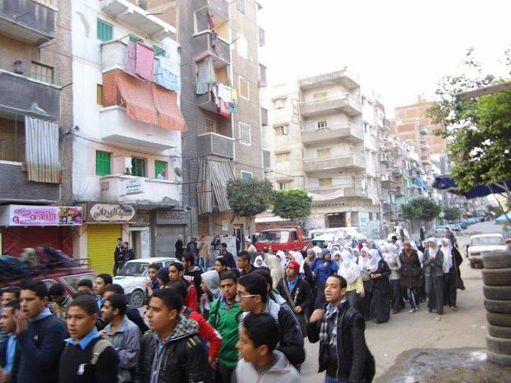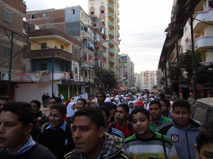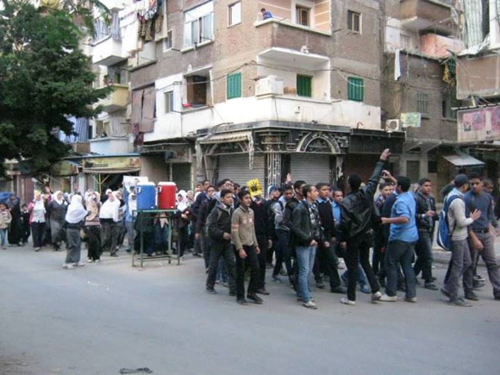 وانطلقت المسيرة من أمام ماركت الحرملك واختتمت أمام المدرسة الفنية المتقدمة بالمنطقة وقام الطلاب بترديد هتافات " احمى كنيسة واضرب ازهر .. يسقط يسقط جكم العسكر" ، "الأزهرية بجد .. رجالة على اى حد ".