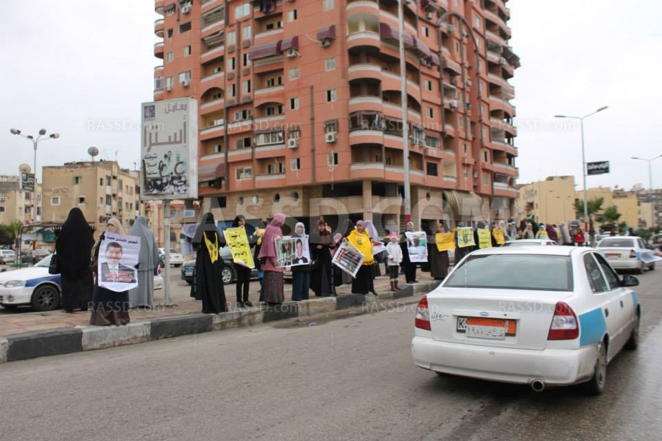 رفعت المشاركات في الوقفة شعارات رابعة العدوية و صور شهداء و معتقلين بورسعيد ولاقت السلسله البشرية تفاعل كبير من المارة