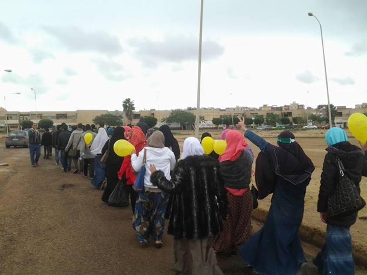 نظم طلاب ضد الانقلاب بجامعة السادات بمحافظة المنوفية مسيرة صباح اليوم انطلقت من أمام كلية التربية حتى كلية الدراسات الاسلامية والعربية استمرار لفعاليات "الطلاب يشعلون الثورة" .