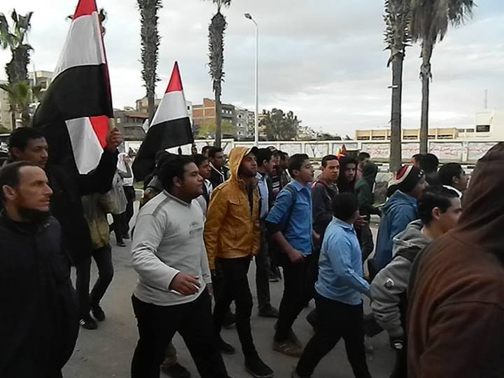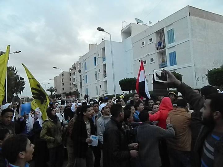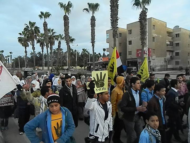 وخرج المئات رافعين أعلام رابعة العدوية وصور الرئيس المنتخب محمد مرسي ومرددين هتافات مناهضه للانقلاب منها "يسقط يسقط حكم العسكر" وتعد هذه المسيره هي الأولى لحركة 7 الصبح ببرج العرب.