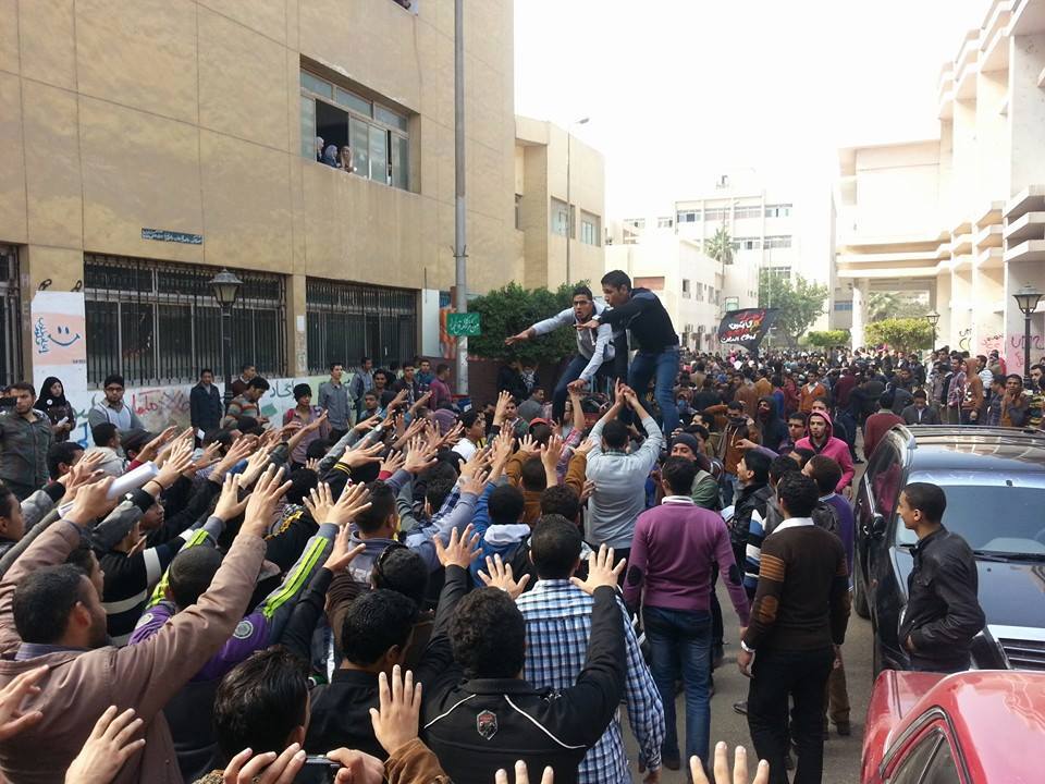 ويذكر أنه قبل هجوم البلطجية بقليل قام طلاب ضد الانقلاب بجامعة الزقازيق بعمل مسيرة حاشدة طافت ارجاء الجامعة ومنددة بدخول الشرطة والبلطجية الجامعة واعتقال بعض الطلاب .