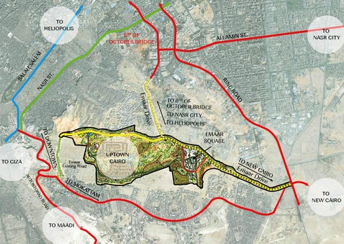 هذا التعاون يعني فيما يعني أن تسمح مؤسسات الدولة لشركة إعمار الإماراتية لبناء طريق خاص بها لربط آب تاون كايرو، وإعمار سكوير بشبكة الطرق في القاهرة، وهذا الطريق يتطلب تجهيز منطقة الجبل الأحمر ما حدا بوزارة الدفاع أن تعلن عن نيتها “إزالة عوائق مشروع إعمار سكوير بالمقطم”، نحن نتحدث هنا غالبا عن مئات العائلات من السكان الذين يقعون على مسار الطريق المزمع بناءها!