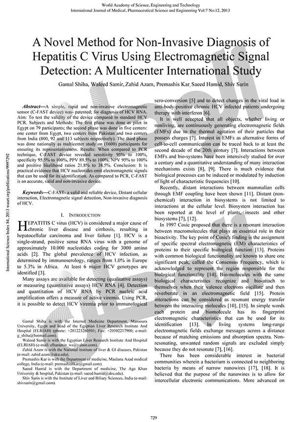 كشف ملخص هيئة الأبحاث العلمية الدولية عن البحث المتعلق بالاختراع عن أنه يفتقر للوصف الواضح والتفاصيل الدقيقة لطريقة عمل الجهاز، ولم يتحقق شرط توفير معلومات كافية عنه، كما تشير شروط الأبحاث العلمية الدولية.