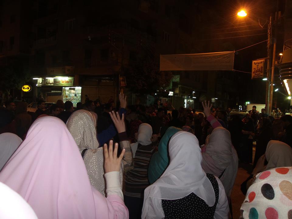 وقد رفع المتظاهرون لافتات تندد باعتقال "سمك" ، كما رفعوا أيضا شارات "رابعة" مشعلين الألعاب الناريه وسط هتافات منددة بممارسات الداخلية فى حق مؤيدي الشرعية من أبناء المدينة.