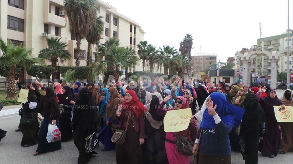 هذا وقد رفعت الطالبات لآفتات منددة باستمرار اعتقال الطالبات وبالانتهاكات التي يمارسها الأمن فى سجون الانقلاب ، وقد طالبن بالافراج عن جميع المعتقلات وبخاصة طالبات الأزهر والمنصورة.